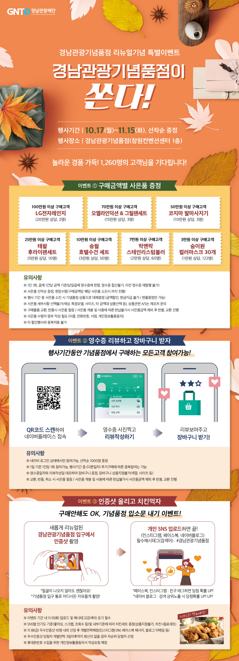 - 10월 17일부터 11월 15일까지, 매장입구 새단장 기념 이벤트