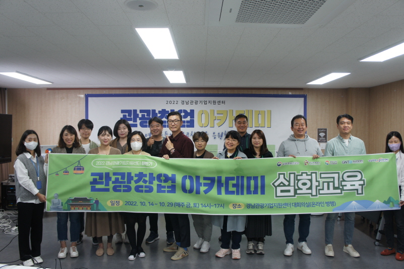 경상남도와 경남관광재단은 ‘2022년도 경남 관광 창업 아카데미’ 하반기 과정을 10월 14일부터 11월 5일까지 한 달간 수강생 100여 명이 참석한 가운데 성황리에 마쳤다고 밝혔다.