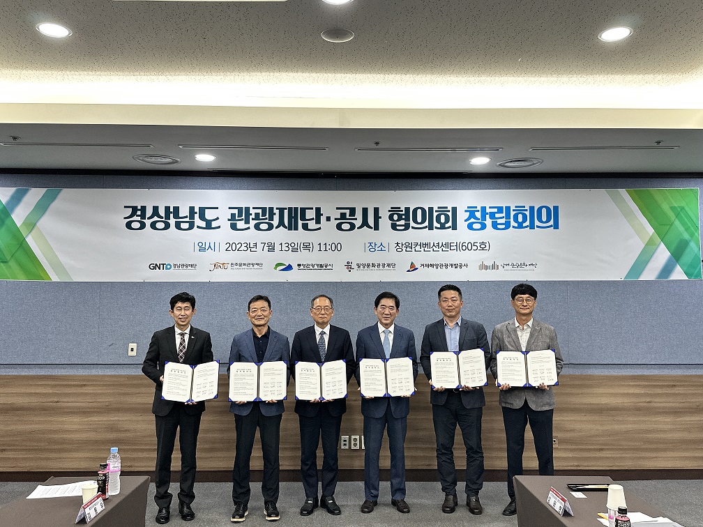 경상남도와 도내 5개 시·군(진주, 통영, 거제, 밀양, 남해) 산하 관광기관이 경남 관광 활성화를 위한 상호 협력체계 강화를 위하여 한데 뭉쳤다.