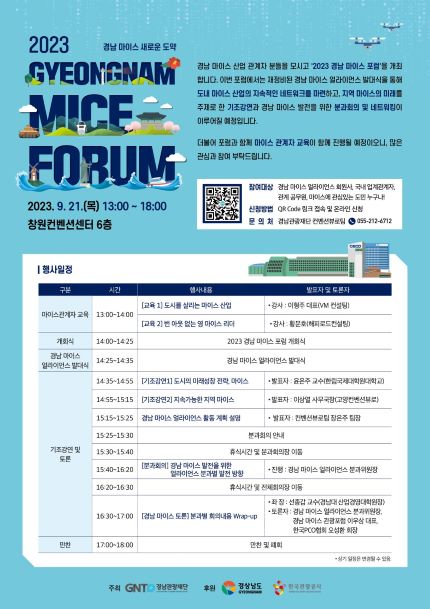 경남도와 경남관광재단은 오는 9월 21일 창원컨벤션센터에서 ‘2023 경남 마이스 포럼’을 개최한다고 밝혔다.