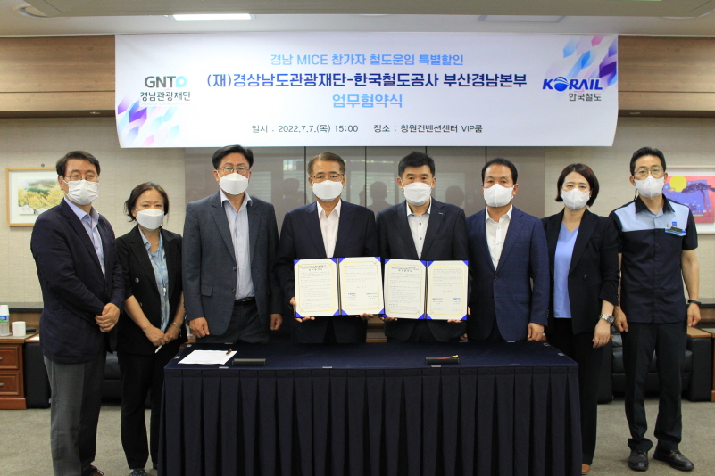 경상남도와 경남관광재단은 7일 한국철도공사 부산경남본부와 협약을 체결하여 경남에서 개최되는 컨벤션 행사 참가자에 대해 특별 철도할인 혜택을 제공한다고 밝혔다.